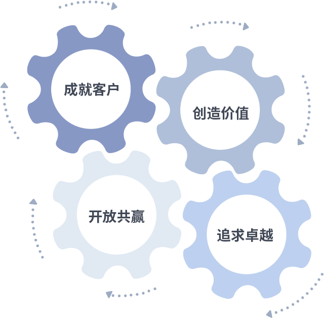 成就客户是一切决策的出发点,创造价值是衡量所有工作的标准,追求卓越是EBET易博做事做人的态度,开放共赢是EBET易博的格局也是最终的结果。价值观的齿轮环环相扣,推动着组织里的每个人不断向前。